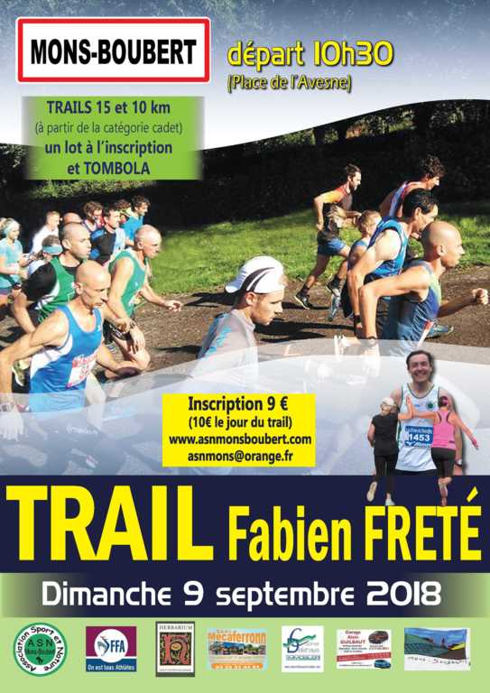 L'Association Sport et Nature de Mons-Boubert organise le dimanche 9 septembre 2018 à 10h30 à Mons-Boubert, la troisième édition du Trail Fabien FRETÉ.